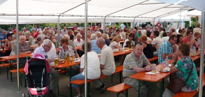 Bei wunderbarem Sommerwetter durfte der MV Aich am Sonntagmorgen seine traditionelle Kirbe in und um die Festhalle eröffnen. Bereits am Samstag hatten eine Menge fleißige Helfer Vorbereitungen für Schlachtplatte Zwiebelkuchen, Schnitzel, Maultaschen und Göckele...